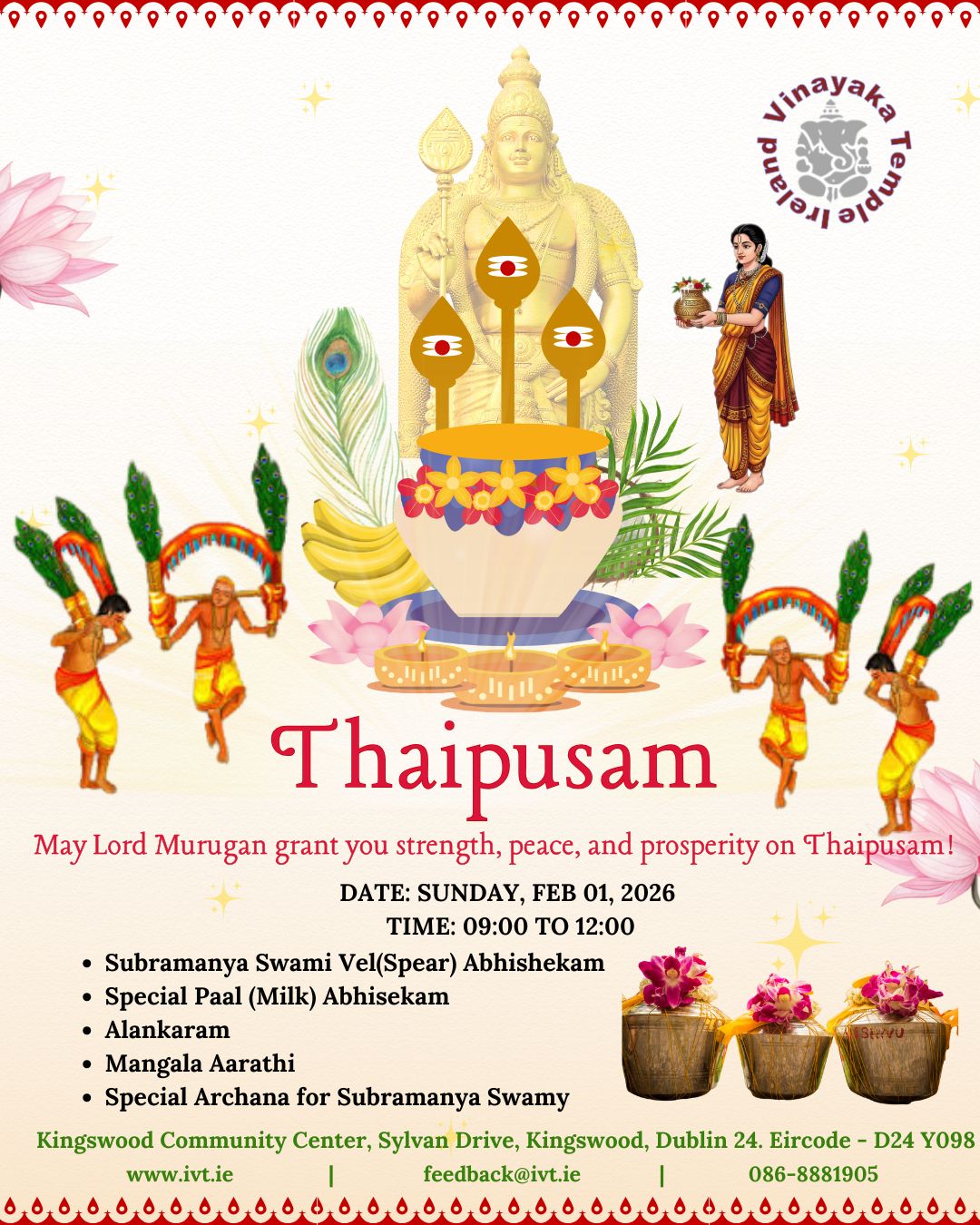 ** Devotees who wish to offer Kavadi are warmly invited to bring Paal (Milk) Kavadi, Rose Water Kavadi, or Flower Kavadi to the temple as an expression of their devotion. The sacred offerings brought through your Kavadi will be used for Abhishekam to Lord Subramanya Swami (Murugan), making your participation a blessed part of the pooja. We welcome all devotees to take part and receive His divine grace. 🙏